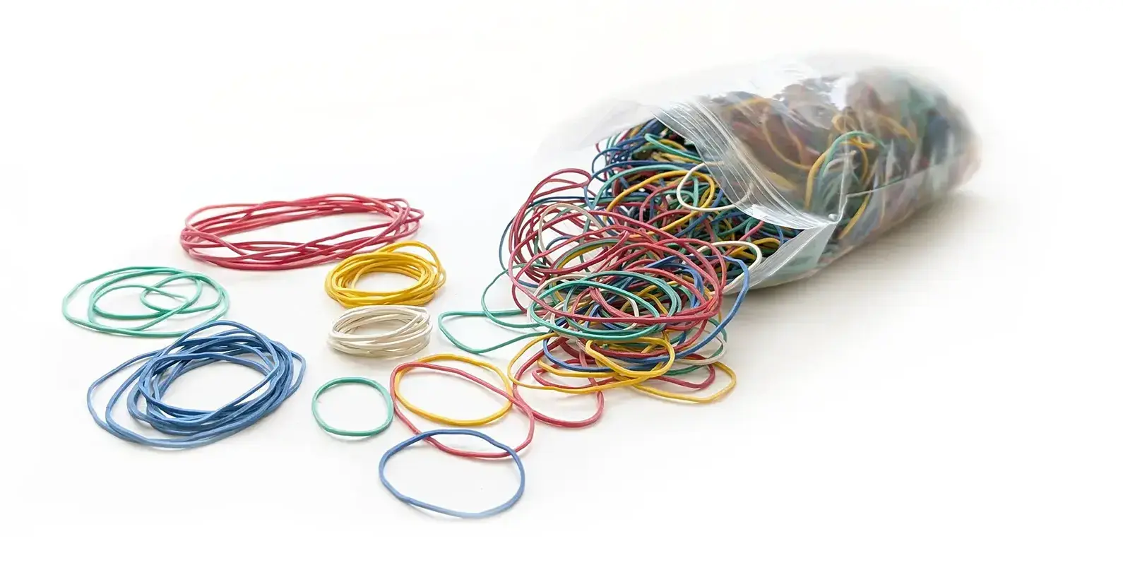 Stückzahlen per Kilogramm: transparente Gummiringe und Gummibänder